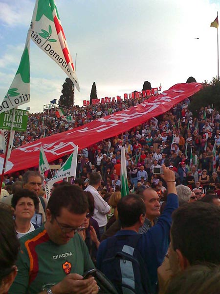 Per quelli che come i leghisti pensano che ci siamo andati a fare un weekend di piacere nella capitale posso rispondere che sarei stao meglio a casa a mettere a punto il mio PC piuttosto che scarpinare a piedi per ore prima sotto il sole e dopo quasi sotto la pioggia (che per fortuna è venuta dopo che eravamo già sull'autobus)
