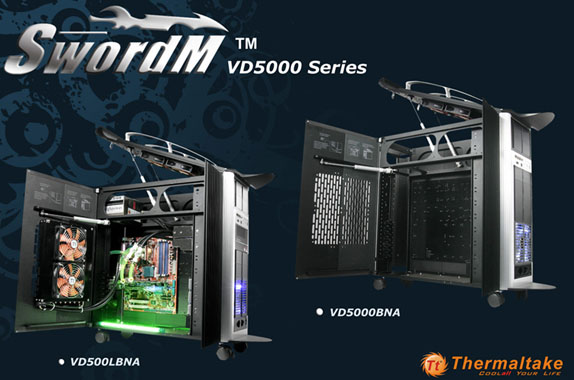 Except for the most important cooling performance, small details of SwordM have also been designed with careful considerations. Such as the roof handle and wheels for portability, the top and side panel utilize hydraulic rod for effortless assembly, and the built in USB ports, HD Audio, eSATA and IEEE1394 connectors. A Thermaltake exclusive 7” expansion slot is also designed to allow the optional upgrades of retractable 7” touch screen LCD monitor with double screen effects.