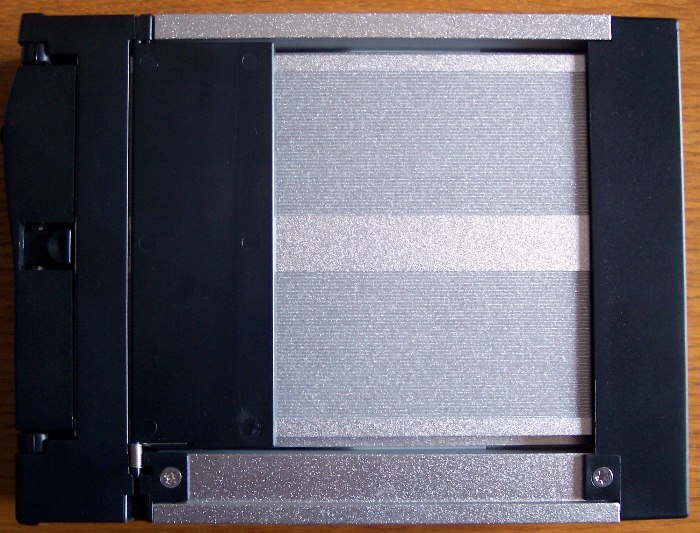 Con una semplice clip, si rimuove la base superiore in alluminio e si intravede la ventola interna che, quindi, assorbe aria calda dal basso dell'HD e lo espelle in basso al dispositivo e da qui verso la zona posteriore del case.