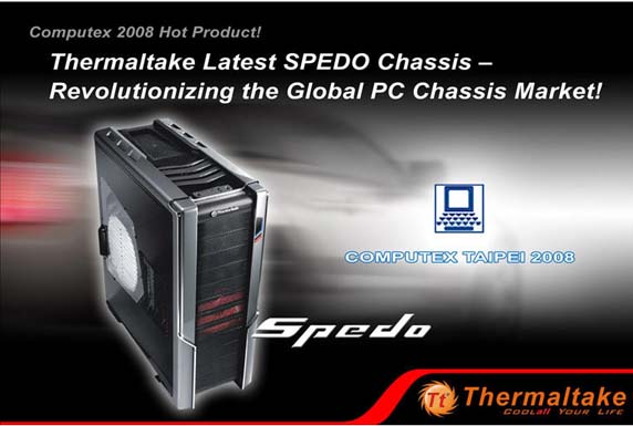 Computex 2008, Thermaltake as the top choice brand of PC Chassis around the world, will be exhibiting their latest innovation of the new Chassis Superlative --- SPEDO! With many new features that are never seen on the market before, SPEDO has been predicted to be the next hit of the global PC Chassis Market.