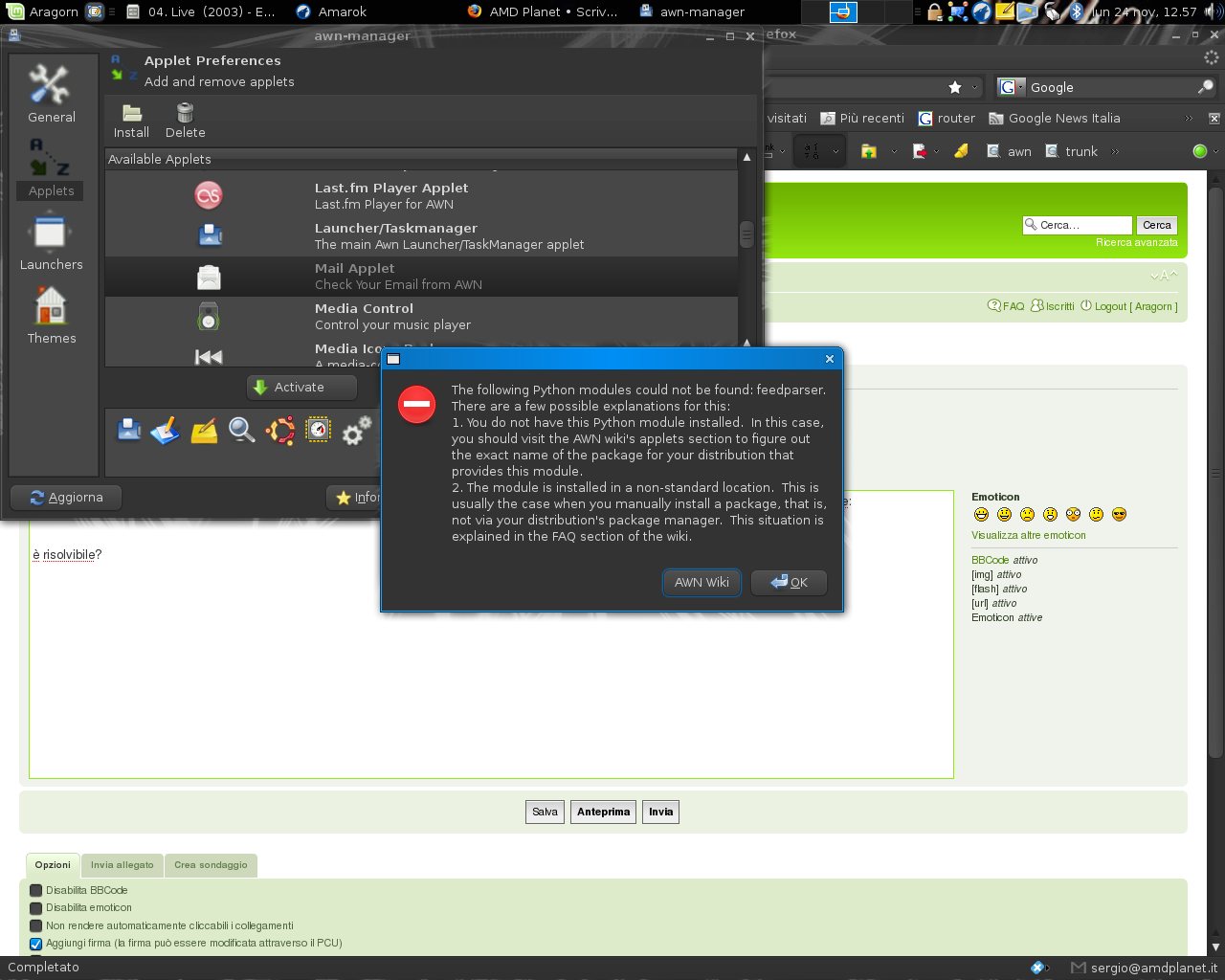 ho installato gli Awn phyton trunk perchè gli altri non mi davano applet disponibili, solo che quando provo a avviare l'applet mail mi da questo errore: